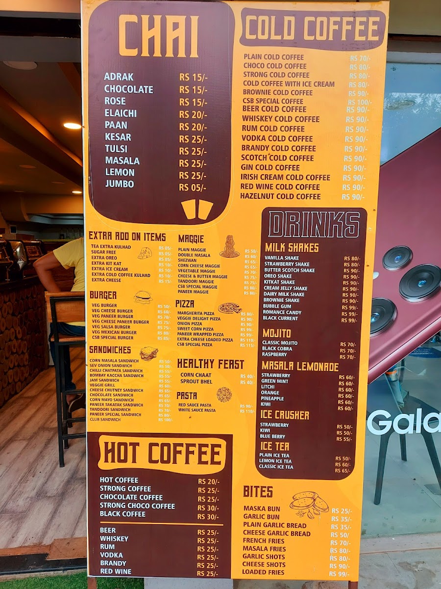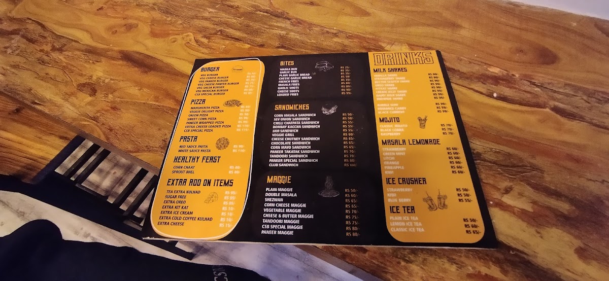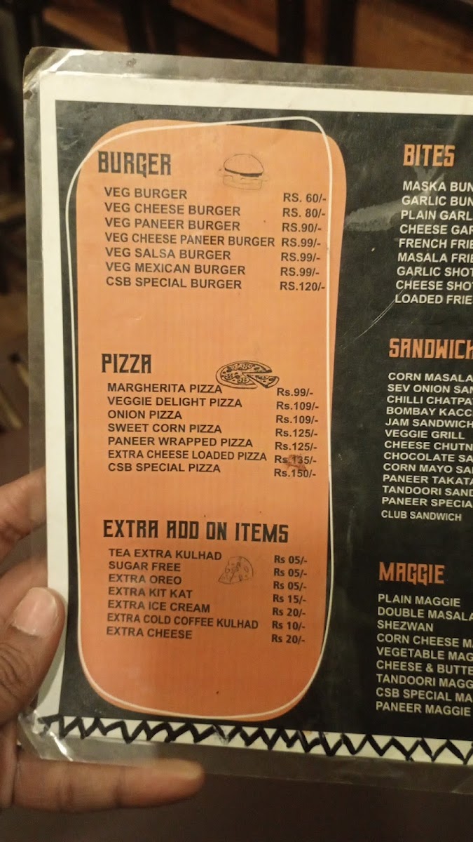 - Burgers: Enjoy an array of vegetarian options, including the CSB Special Burger and Veg Cheese Sandwiches.